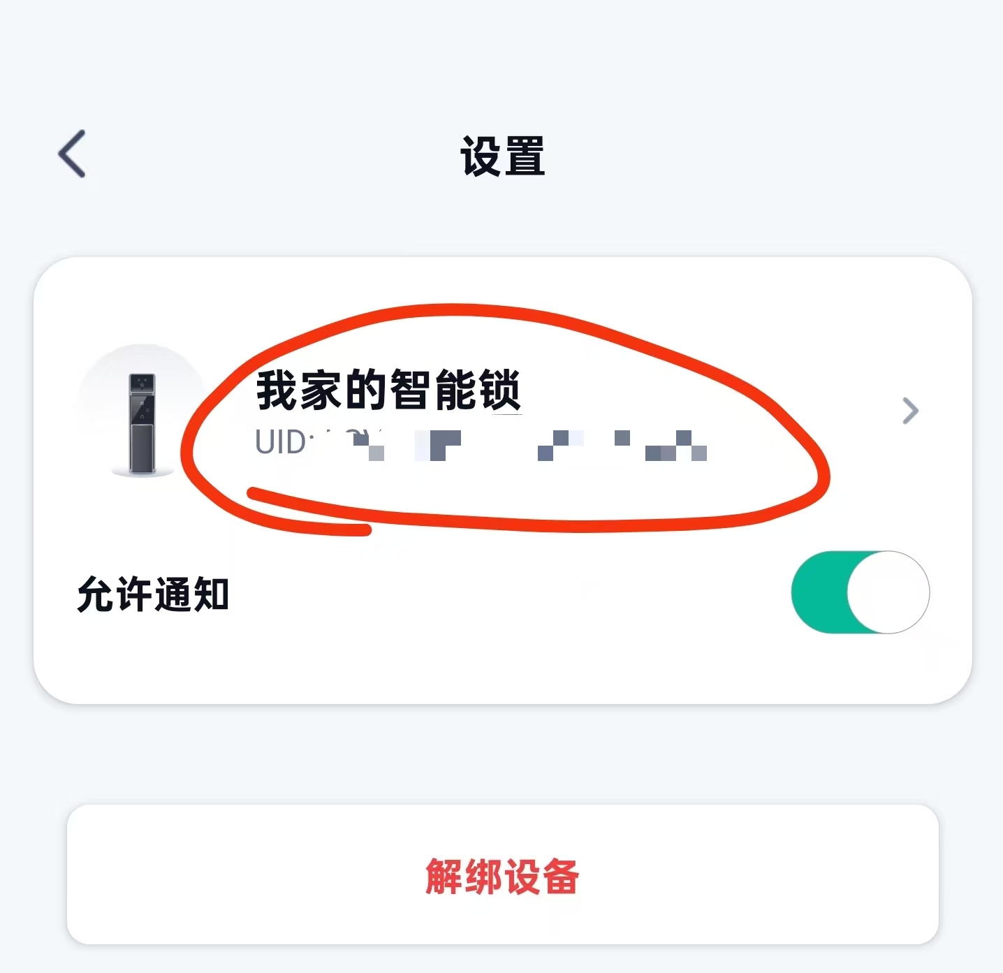 4.1. 请求智能门锁节点 换成你自己的token和uid,其他的都不用更改。