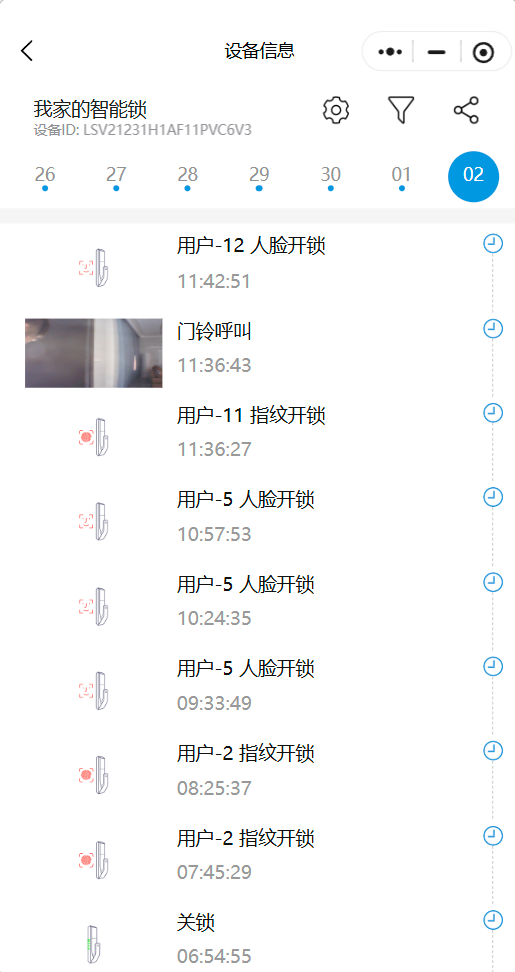 (h="/images/[email protected]",v=0):h=t.base64_decode(a[c].img),"00"==D.content&&(l="指纹开锁",d="指纹开锁",""==a[c].img||null==a[c].img?(h="/images/[email protected]",v=0):h=t.base64_decode(a[c].img)),"01"==D.content&&(l="密码开锁",d="密码开锁",""==a[c].img||null==a[c].img?(h="/images/[email protected]",v=0):h=t.base64_decode(a[c].img)),"02"==D.content&&(l="卡开锁",d="卡开锁",""==a[c].img||null==a[c].img?(h="/images/[email protected]",v=0):h=t.base64_decode(a[c].img)),"03"==D.content&&(l="遥控开锁",d="遥控开锁",""==a[c].img||null==a[c].img?(h="/images/[email protected]",v=0):h=t.base64_decode(a[c].img)),"04"==D.content&&(l="钥匙开锁",d="钥匙开锁",""==a[c].img||null==a[c].img?(h="/images/[email protected]",v=0):h=t.base64_decode(a[c].img)),"05"==D.content&&(l="虹膜解锁",d="虹膜解锁",""==a[c].img||null==a[c].img?(h="/images/[email protected]",v=0):h=t.base64_decode(a[c].img)),"06"==D.content&&(l="手掌解锁",d="手掌解锁",""==a[c].img||null==a[c].img?(h="/images/[email protected]",v=0):h=t.base64_decode(a[c].img)),"07"==D.content&&(l="指静脉开锁",d="指静脉开锁"),"08"==D.content&&(l="人脸开锁",d="人脸开锁",""==a[c].img||null==a[c].img?(h="/images/[email protected]",v=0):h=t.base64_decode(a[c].img)),"09"==D.content&&(l="远程开锁",d="远程开锁",""==a[c].img||null==a[c].img?(h="/images/[email protected]",v=0):h=t.base64_decode(a[c].img)),"0A"==D.content&&(l="门内开锁",d="门内开锁",""!=a[c].img&&null!=a[c].img||