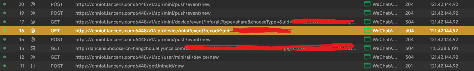3. 尝试抓包 打开抓包软件(我用的Reqable),在以下页面点击登陆按钮 抓到了这些东西,看到黄色光标上面的那一条,就找到了开锁和关索的记录。在请求头中,也获取了token 3.1. 分析包和回参 黄色光标上面那一条右键添加到API里进行调试,最终发现参数中的uid就是门锁的uid