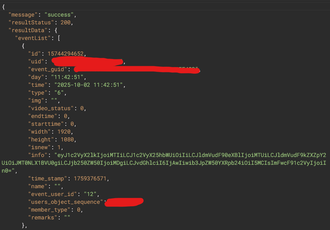 发现了事件的时间跟小程序列表里的第一条一样,那就对了。type是事件类别、event_user_id就是用户几,img就是图片的网址(需要base64解密)