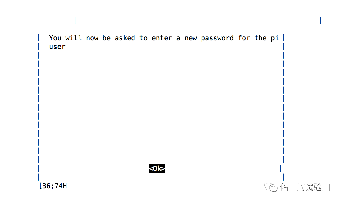 1) 在 pi@raspberrypi:~$ 界面输入 sudo raspi-config ,在弹出的界面中选择 1 Change User Password ,按下 return或回车 ,再点击 OK ;