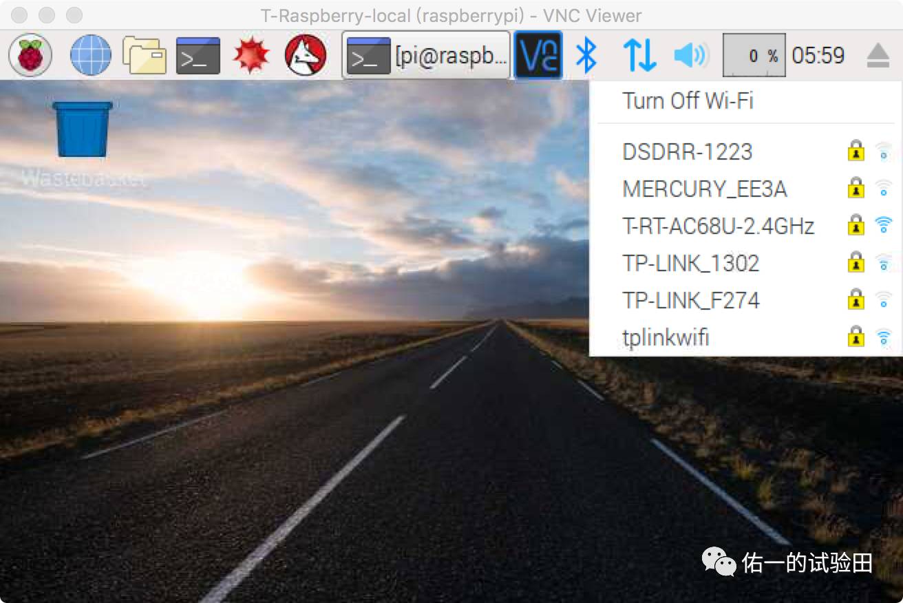 1) VNC登录树莓派后,进入到树莓派的可视化桌面,在桌面的右上角点击 数据图标 ,可以选择路由器, 输入密码 即可时限无线连接路由器;