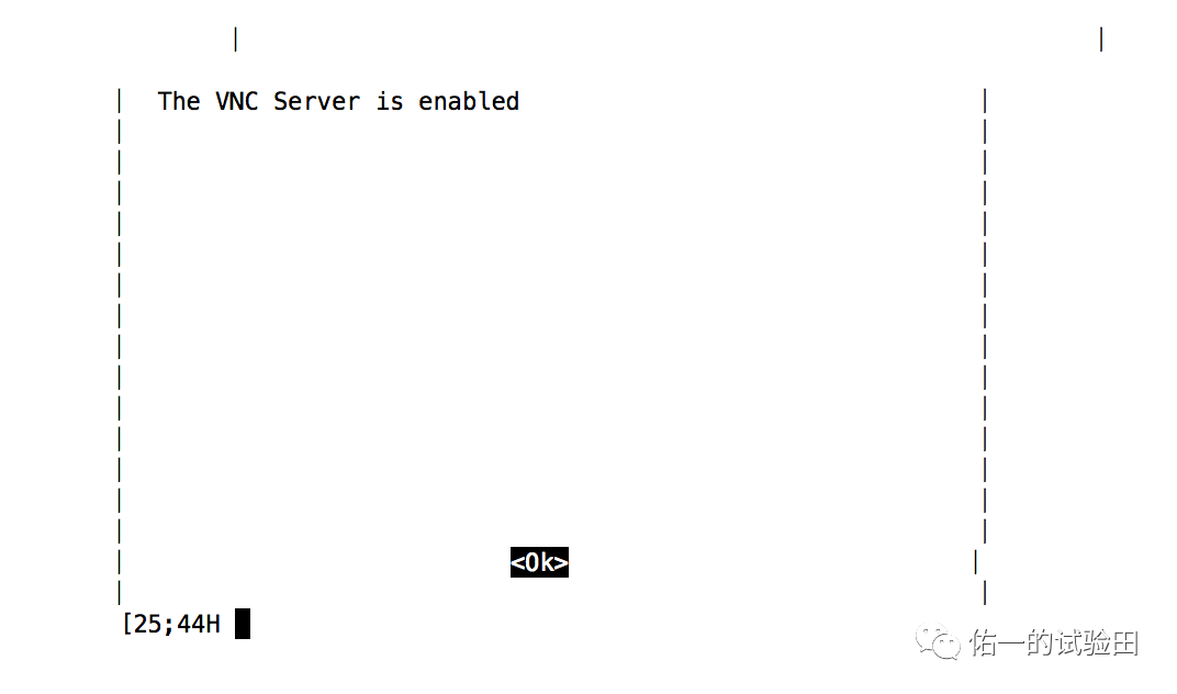 3) 选择 YES ,按下 return或回车 ,系统显示 The VNC Server is enabled ,再次按下return或回车,退回 raspi-config 界面 ;