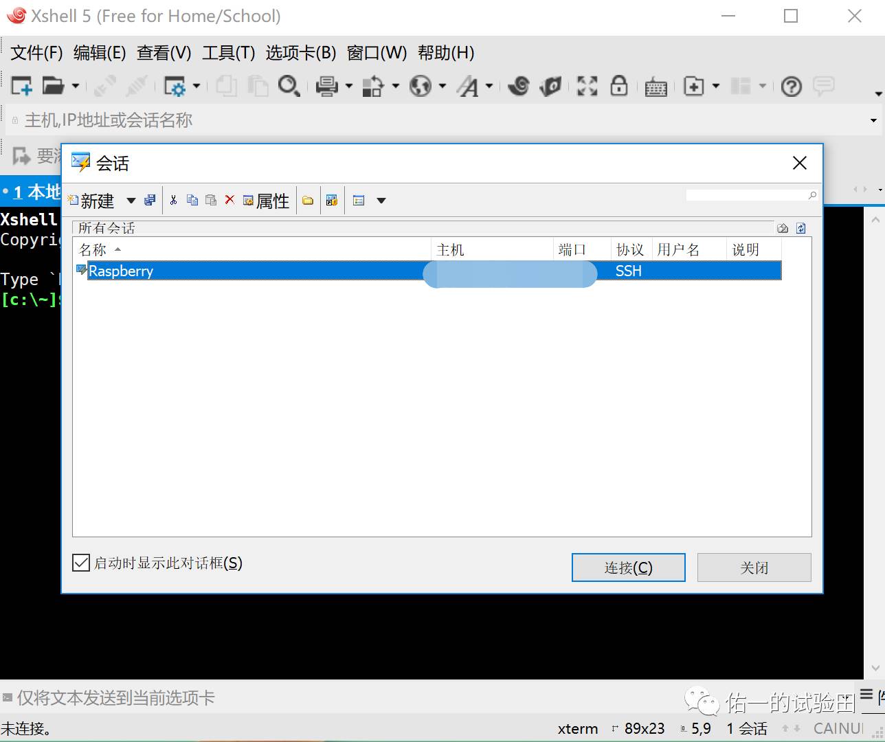 3) PC:打开 Xshell5 , 新建会话 ,输入 树莓派的IP地址和 端口号(22),点击 连接 ,输入用户名 pi,输入密码 raspberry ;